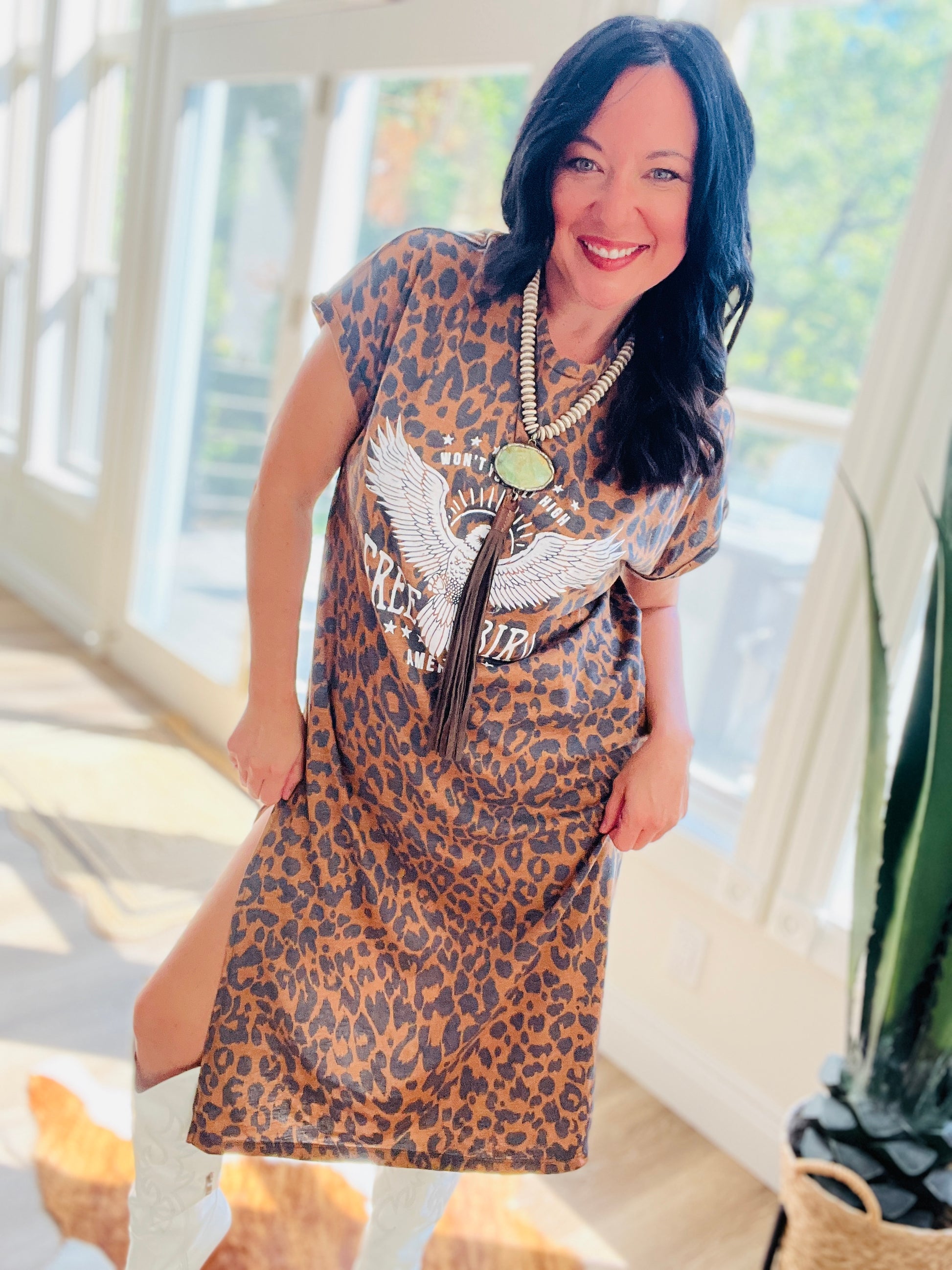 Free Bird Graphic Leopard Maxi Dress